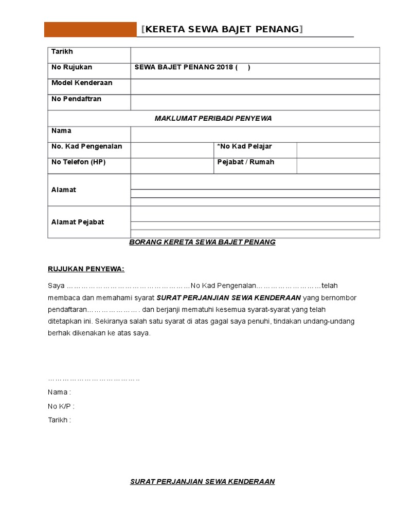 Borang Kereta Sewa Anda boleh memilih untuk membayar deposit sebanyak 10 ataupun bayaran penuh. Lengkapkan borang carian di bawah untuk mendapatkan kereta sewa murah di Penang. Pikbest telah menemui 5521 hebat template excel secara percuma.